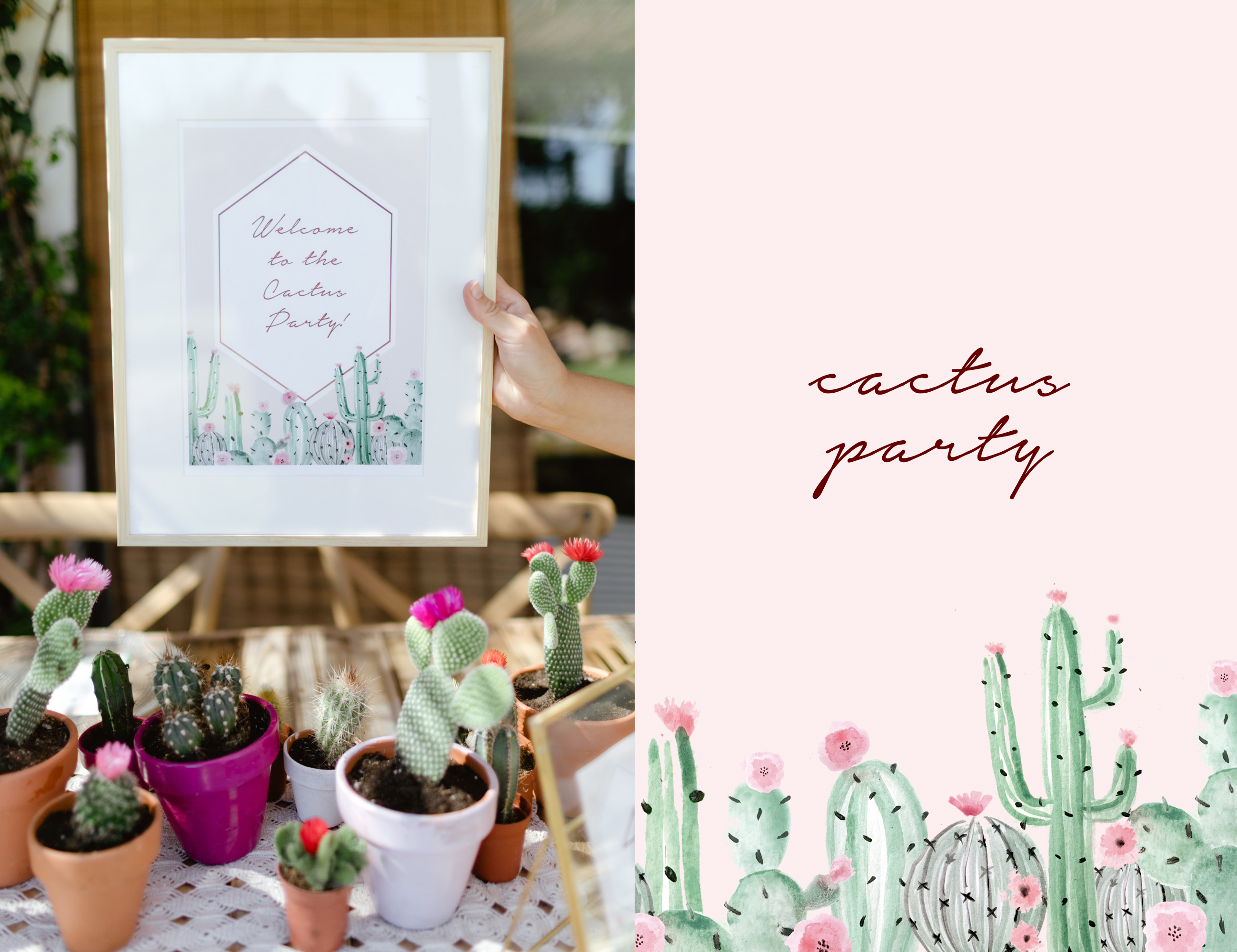 Una fiesta privada de amigas en el jardín de La Alquería del Mar. Temática elegida Cactus Party por su frescura y lo divertida que queda. Gabriela de Nina Designs dibujó unas acuarelas preciosas para los carteles, las minutas del menú, número de mesas y carteles de la Sweet Table. Vajilla de cristal mezclado con cubiertos dorados y sillas y mesas de madera. El menú fue preparado por Mª Jose (majoses) y los dulces de la mesa dulce también! Fotos por la fotógrafa Dark Orange